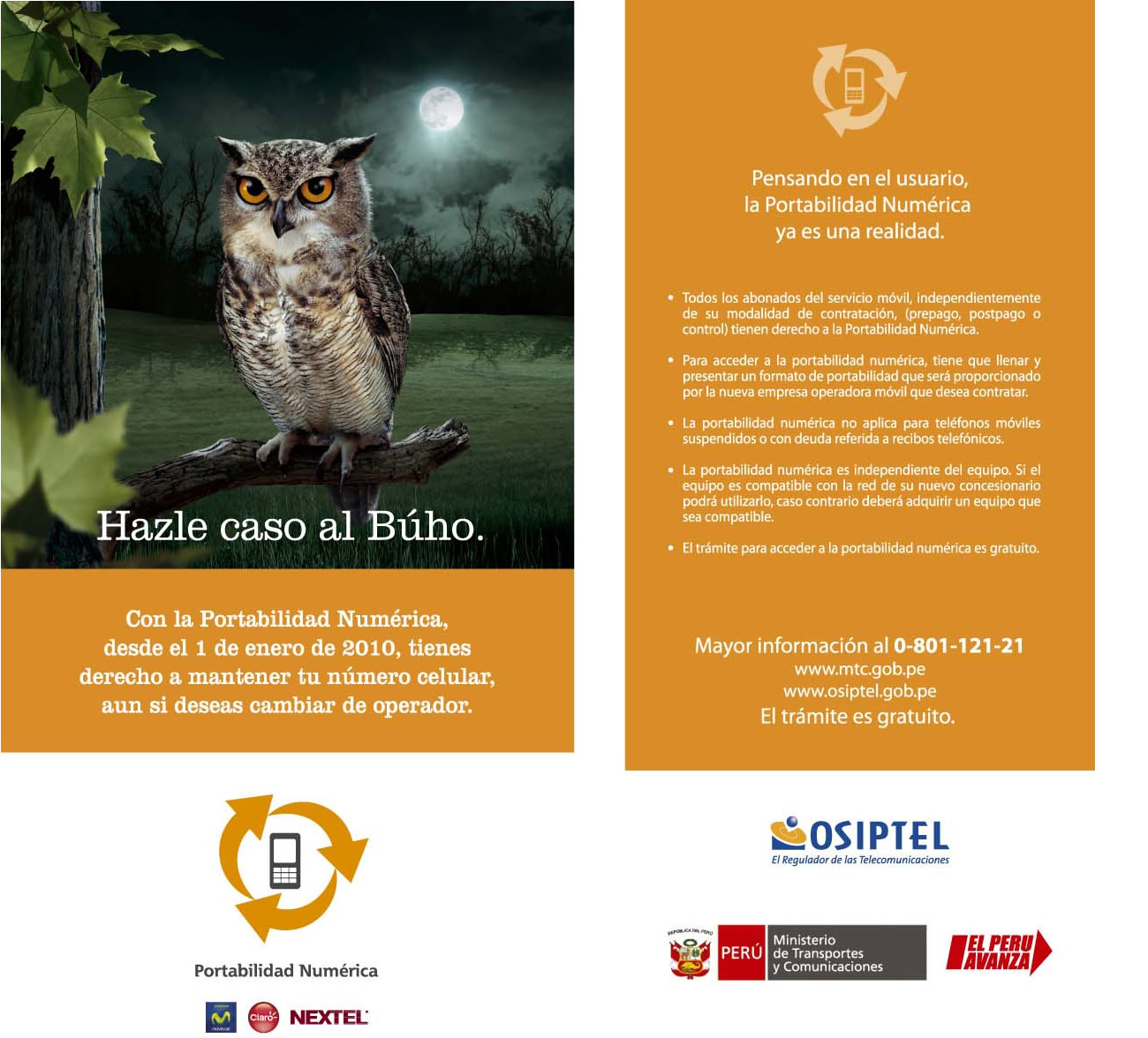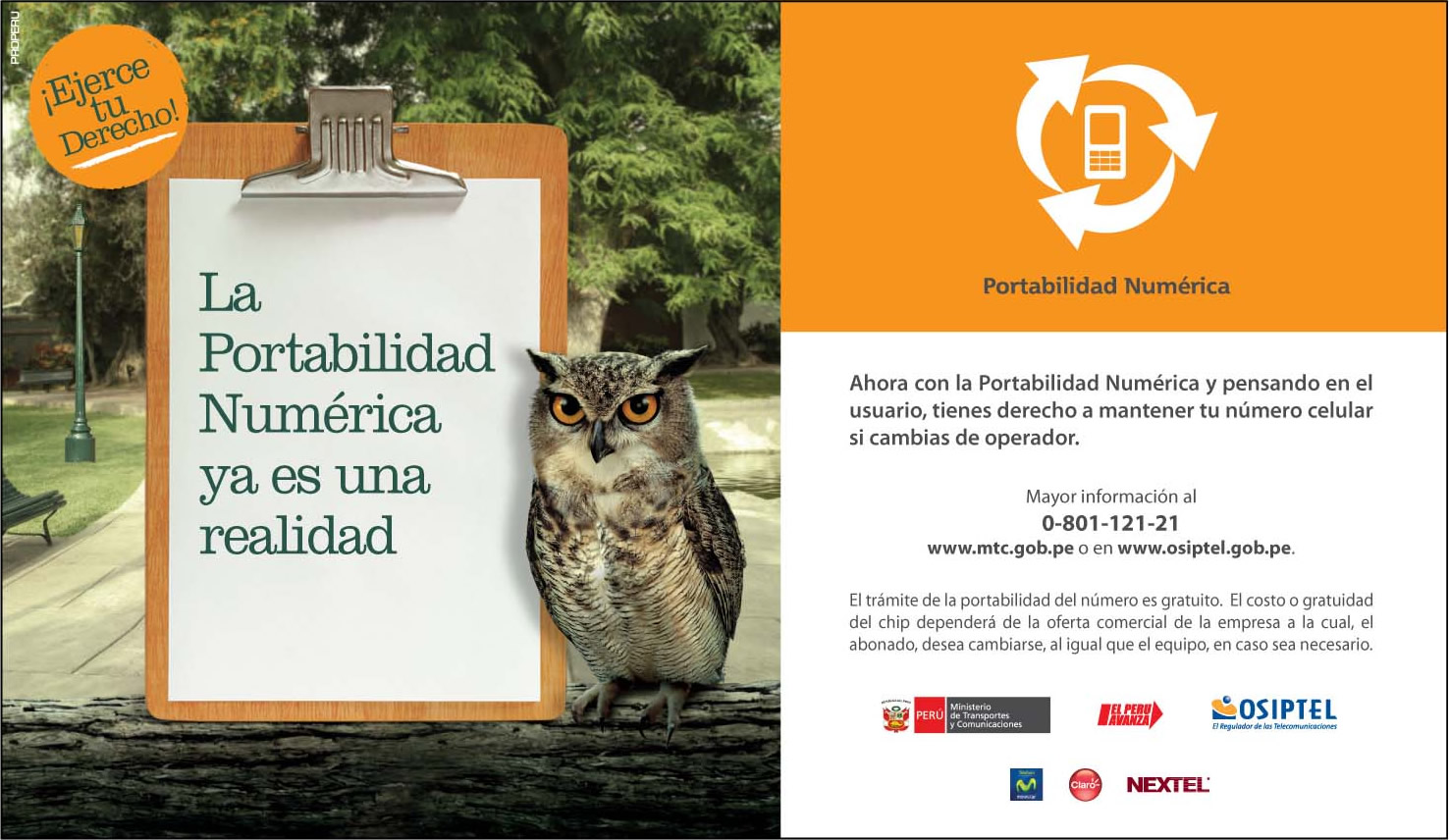 La portabilidad numérica es el derecho a mantener el número de celular aun si el abonado decide cambiarse de operador del servicio móvil. Pueden acceder todos los abonados suscritos a cualquier plan prepago, postpago o control del servicio móvil. A partir del 01 de enero de 2010.