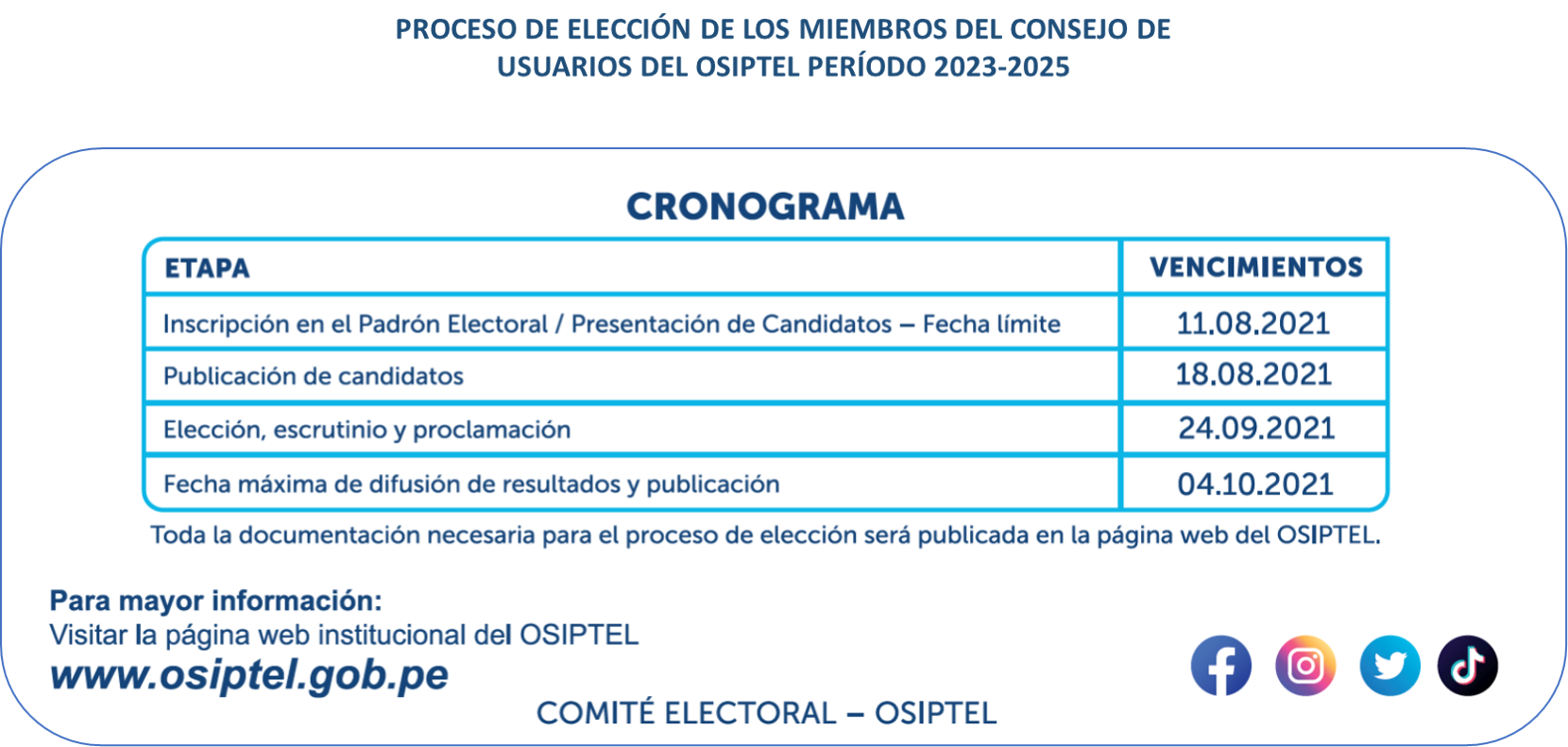 | Resolución de Consejo Directivo N° 062-2023-CD/OSIPTEL Designación de miembros del comité electoral a cargo de la conducción y desarrollo del proceso de elección de los miembros del consejo de usuarios del OSIPTEL, periodo 2023-2025 |