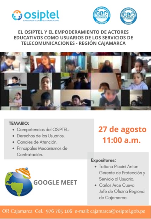 El OSIPTEL y el empoderamiento de acotres educativos como usuarios de los servicios de telecomunicaciones - Región Cajamarca
