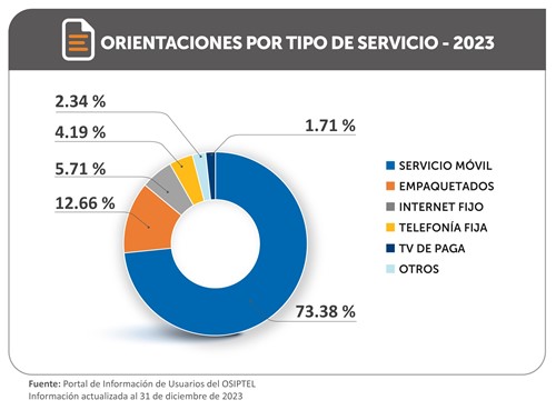 En cuanto a las atenciones realizadas a solicitud de los usuarios, la mayor cantidad (292 764) estuvieron relacionados al servicio móvil. Le siguieron los servicios de empaquetados (50 522), internet fijo (22 777), telefonía fija (16 716), televisión de paga (6816), entre otros, como se puede verificar en el Portal de Información de Usuarios del ente regulador.