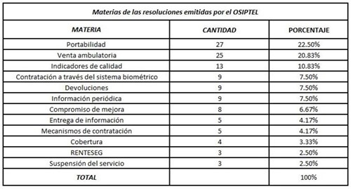 Materia de resoluciones emitidas por el OSIPTEL