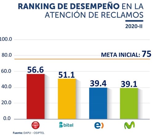 El Organismo Supervisor de Inversión Privada en Telecomunicaciones (OSIPTEL) lanzó el primer Ranking del Desempeño en la Atención de Reclamos, evaluación semestral que mide a las principales empresas operadoras del mercado de servicios móviles en relación con la gestión de los reclamos presentados por sus usuarios.