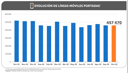 En octubre, 457 470 líneas móviles cambiaron de empresa operadora, informó el Organismo Supervisor de Inversión Privada en Telecomunicaciones (OSIPTEL), lo que representó un retroceso de 11.90 % comparado con octubre de 2021 y 0.49 % menos respecto a setiembre del presente año.