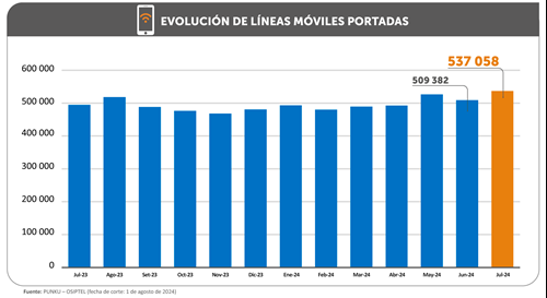 Julio marcó un nuevo pico en el número de portaciones móviles a nivel nacional, luego que 537 058 líneas de telefonía móvil cambiaran de empresa operadora. Se trata de la cifra más alta registrada en los últimos cuatro años y medio, superando lo alcanzado en noviembre de 2019 (527 111 portaciones), de acuerdo a la información procesada por el Organismo Supervisor de la Inversión Privada en Telecomunicaciones (OSIPTEL).
