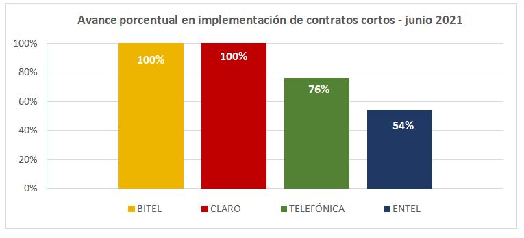 Por su parte, la empresa Telefónica informó al ente regulador que, de las 687 809 nuevas contrataciones registradas en junio, un total de 521 473 nuevas contrataciones (76 %) emplearon contratos cortos. Mientras, la empresa Entel señaló que entregó 309 764 contratos cortos lo que significó su implementación en un 54 % del universo de contrataciones (572 071 contratos totales) de dicha empresa.