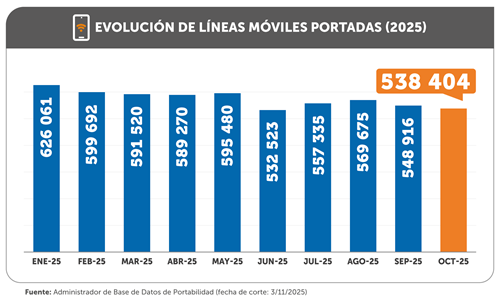 En octubre, un total de 538 404 líneas móviles cambiaron de empresa operadora, a nivel nacional, a través del mecanismo de portabilidad numérica, informó el Organismo Supervisor de Inversión Privada en Telecomunicaciones (OSIPTEL).