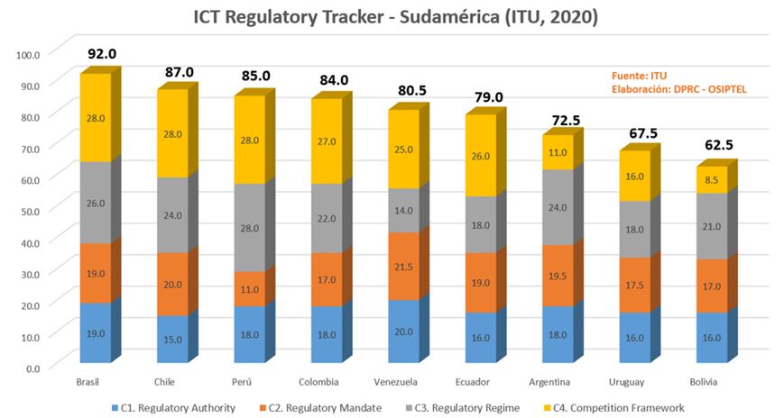 El Perú mantuvo el tercer lugar en gestión regulatoria en materia de telecomunicaciones a nivel de Sudamérica, de acuerdo con el índice ICT Regulatory Tracker 2020, elaborado por la Unión Internacional de Telecomunicaciones (UIT), anunció el Organismo Supervisor de Inversión Privada en Telecomunicaciones (OSIPTEL).