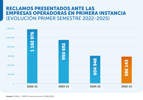Durante el primer semestre de 2025, los usuarios presentaron 586 143 reclamos ante las empresas operadoras de servicios públicos de telecomunicaciones, según reportó el Organismo Supervisor de Inversión Privada en Telecomunicaciones (OSIPTEL). Esta cifra representó el nivel más bajo, incluso inferior a los niveles alcanzados después de la pandemia.