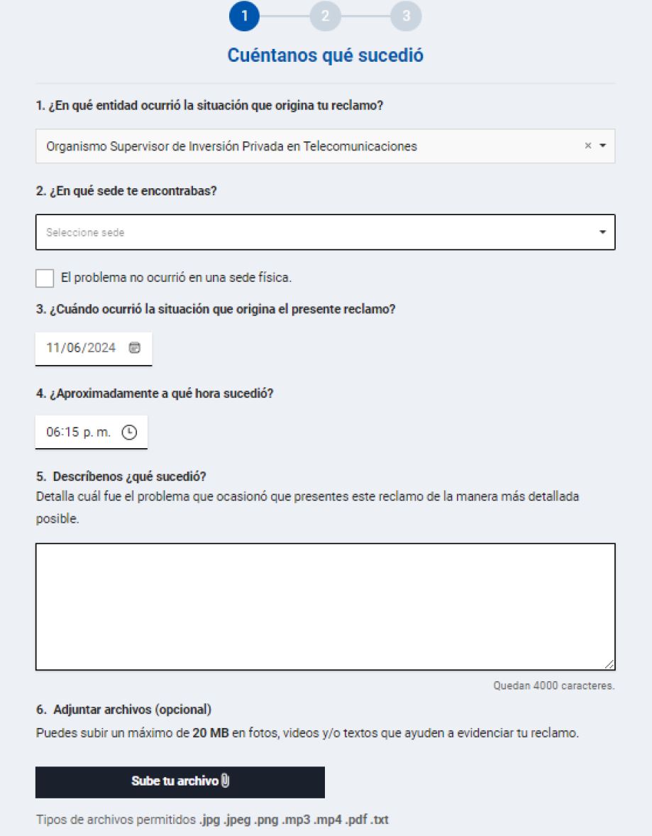 A continuación, se muestran los pasos del registro de reclamo en la plataforma digital “Libro de Reclamaciones” del OSIPTEL: